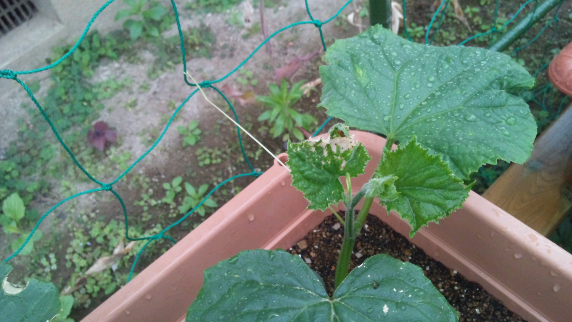 やっと緑のカーテンにしがみつき始めました(^-^)v
